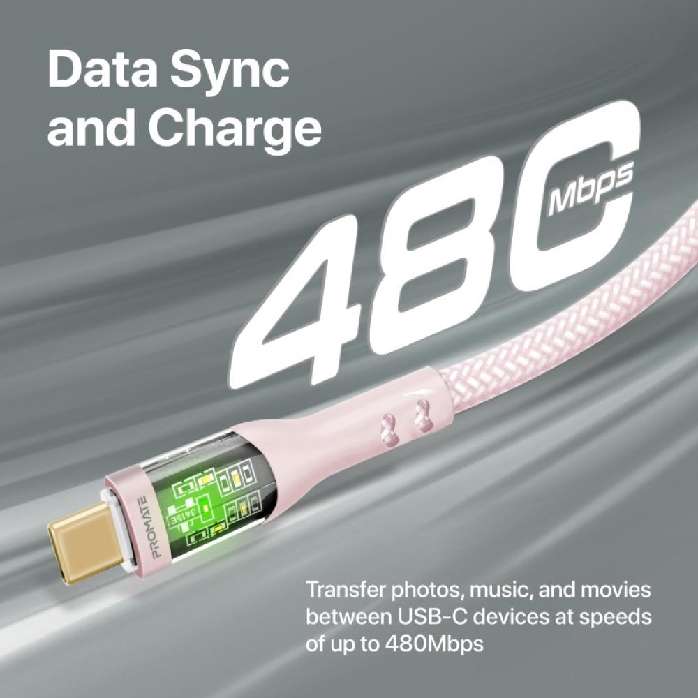 تم اختبار Promate TransLine-CC للانحناء لتحمل أكثر من 25000 انحناء. تم تصميم كابل USB-C ™ المجدول من النايلون هذا لتحمل أقصى قدر من الضغط والإجهاد. لا داعي للقلق بشأن الكابلات التالفة التي لا يتم شحنها بشكل صحيح.
